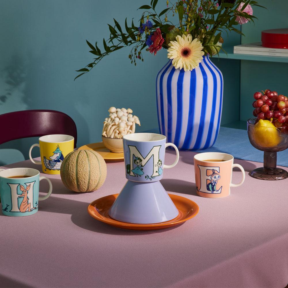 Moomin by Arabia julkaisi vuonna 2023 uuden aakkoskokoelman, jota täydennetään vuosittain uusilla Muumimukeilla. Kokoelman ensimmäiset kirjaimet ovat L, O, V ja E, jotka yhdessä muodostavat sanan LOVE, sekä kirjaimet H ja M, joilla voidaan myös muodostaa sanan HOME.