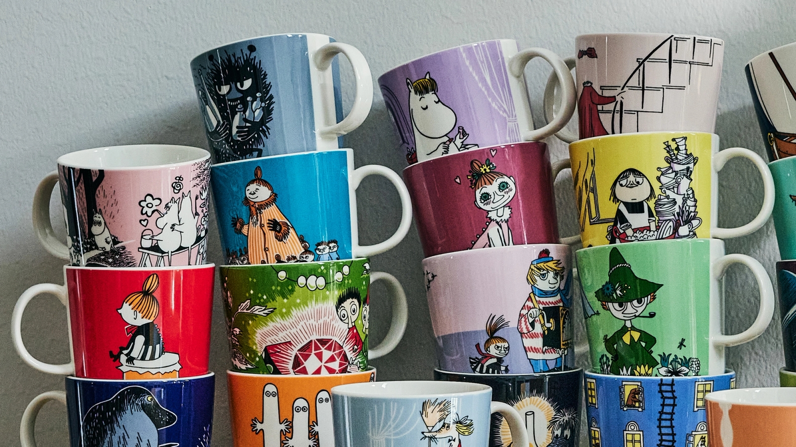 Idag finns det fler än 100 muminmuggar. Varje säsong släpps muggar med nya motiv i olika färger.