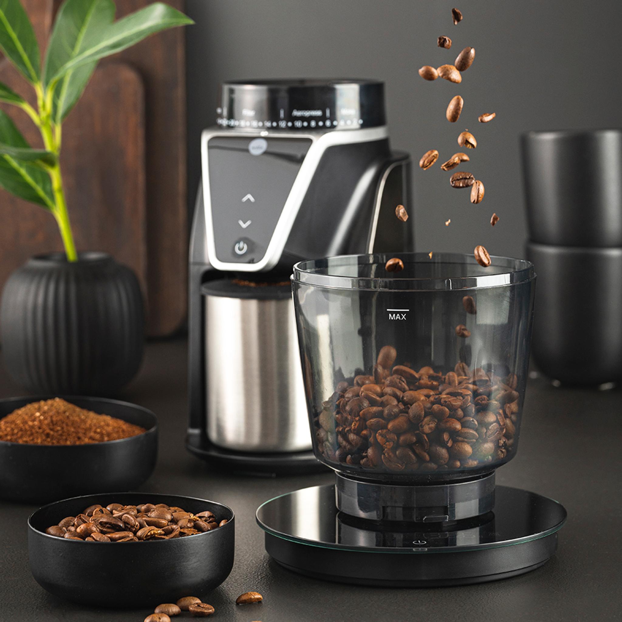 On kahvimyllyjä, joissa on kartioterät tai jauhinkiekot. Terillä varustetussa kahvimyllyssä pavut jauhetaan pyörivillä terillä ja jauhatusaste on hieman karkeampi. Kahvimyllyt, joissa on jauhatuskiekko, voit asettaa tarkemman jauhatusasteen. Jokaisesta tuotekuvauksesta voit lukea lisää kahvimyllyjen jauhatustoiminnoista.