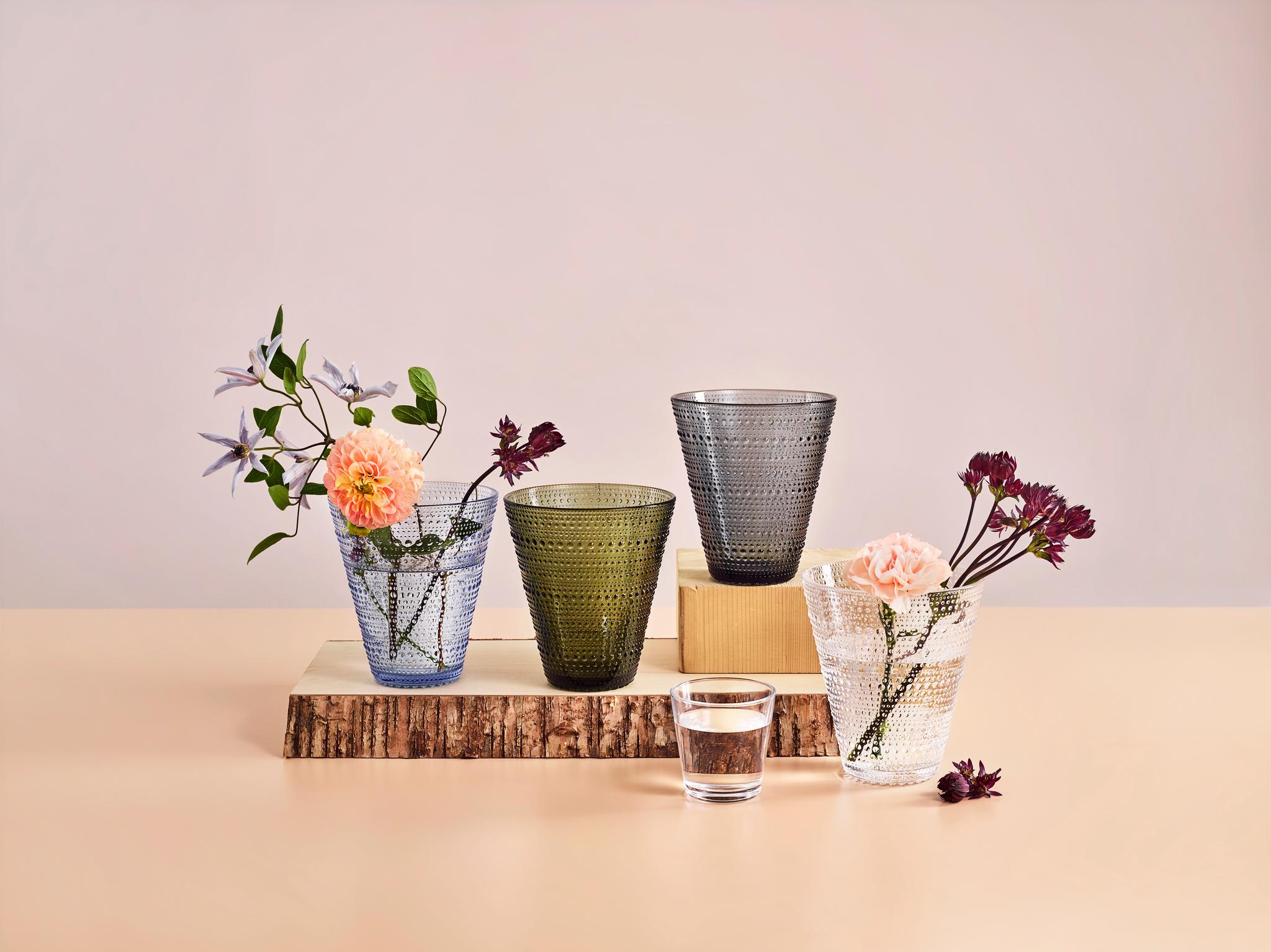 Kokoelma sisältää myös erilaisia lasiastioita useissa ihastuttavissa väreissä, jotka sopivat yhtä hyvin juhlakattaukseen kuin arjen käyttöön. Kaikki sarjan värit ovat kauniita niin keskenään yhdistettyinä kuin yhdessä muiden Iittalan astioiden kanssa. Kokoa täydellinen astiasarja suosikkivärissäsi tai luo värikäs ja persoonallinen kattaus yhdistelemällä sarjan erivärisiä laseja ja lautasia keskenään.