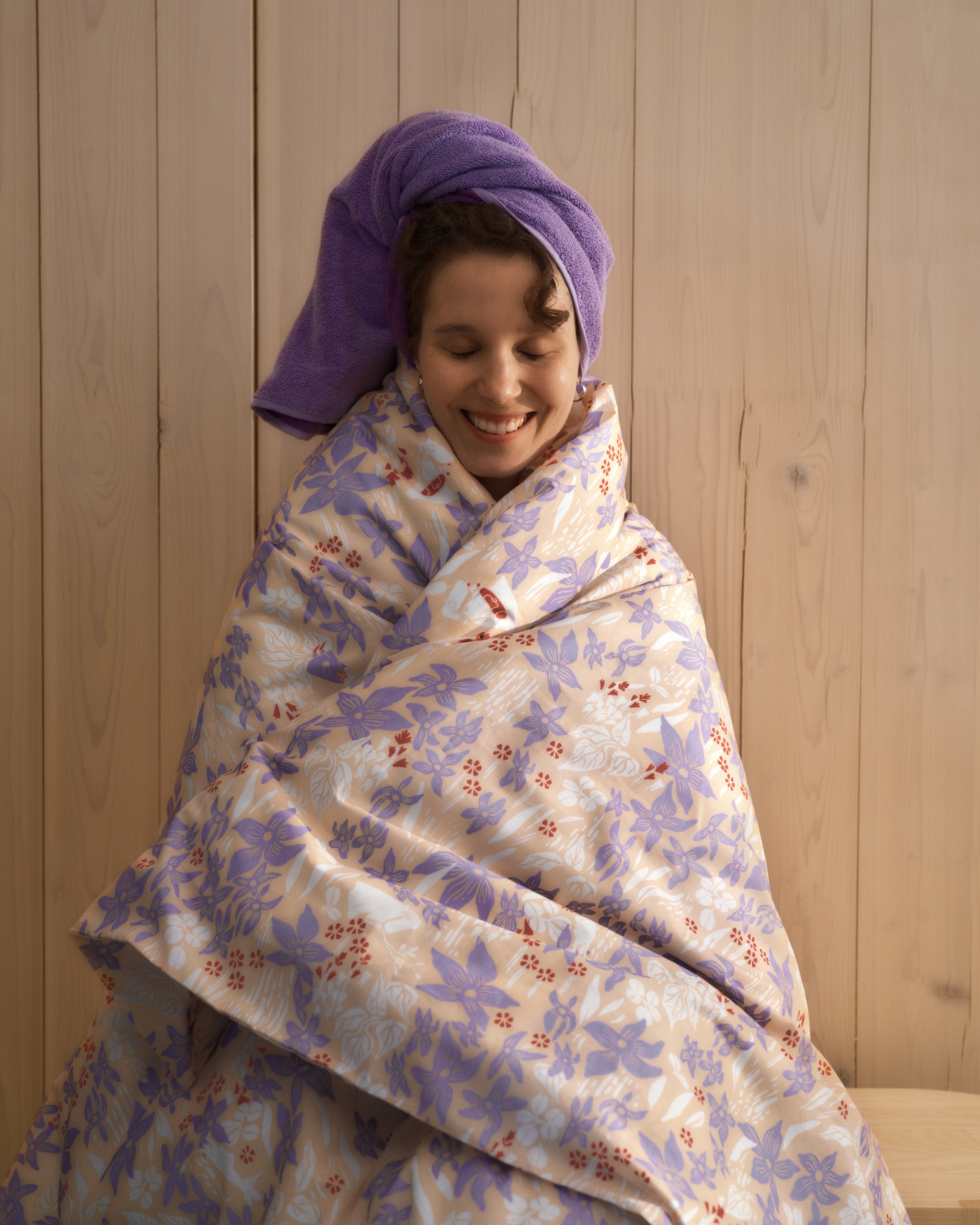 Kokoelmasta löydät käsipyyhkeet, kylpypyyhkeet, pussilakanat ja tyynyliinat ihastuttavissa sävyissä, kuten liila, vihreä ja harmaa.