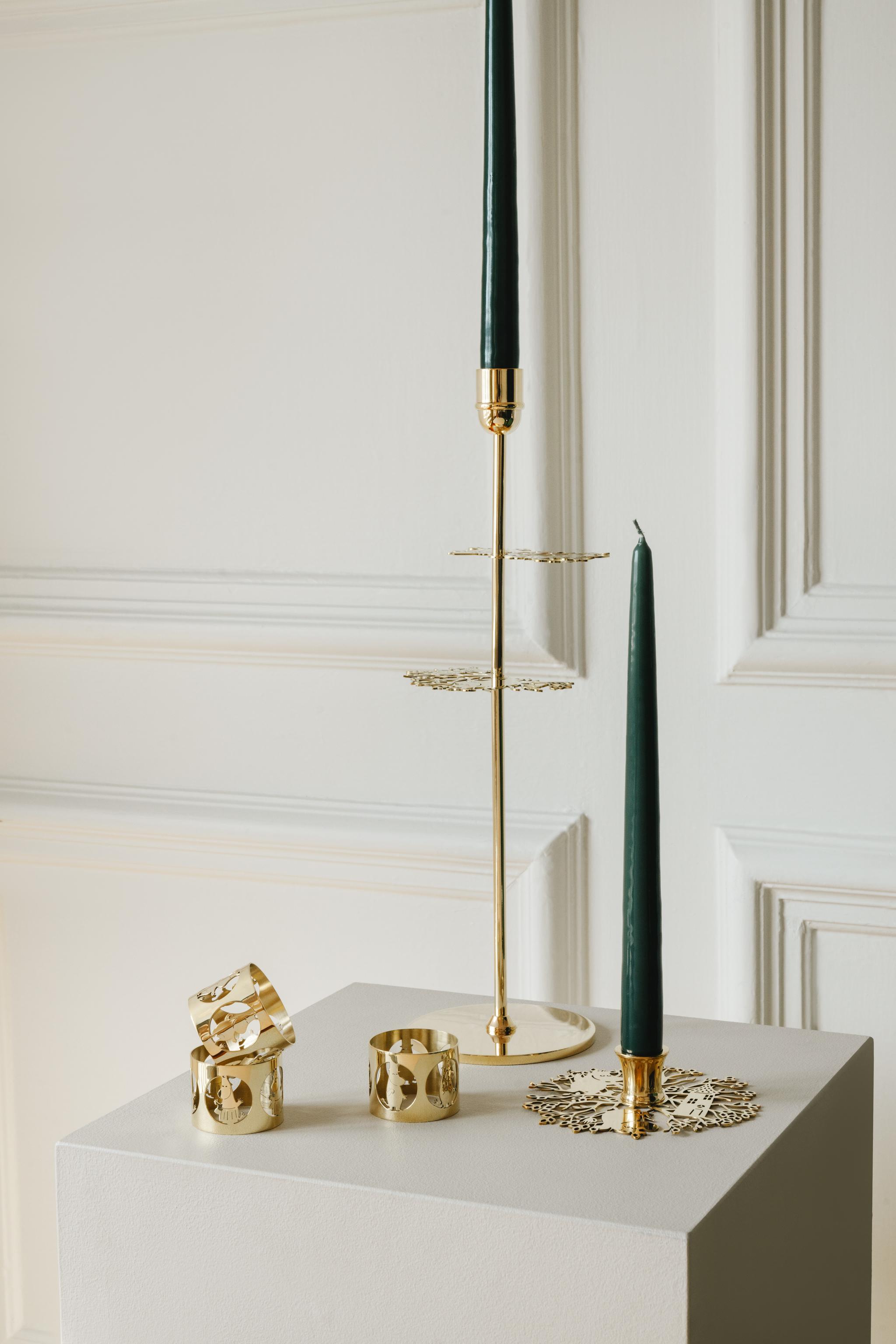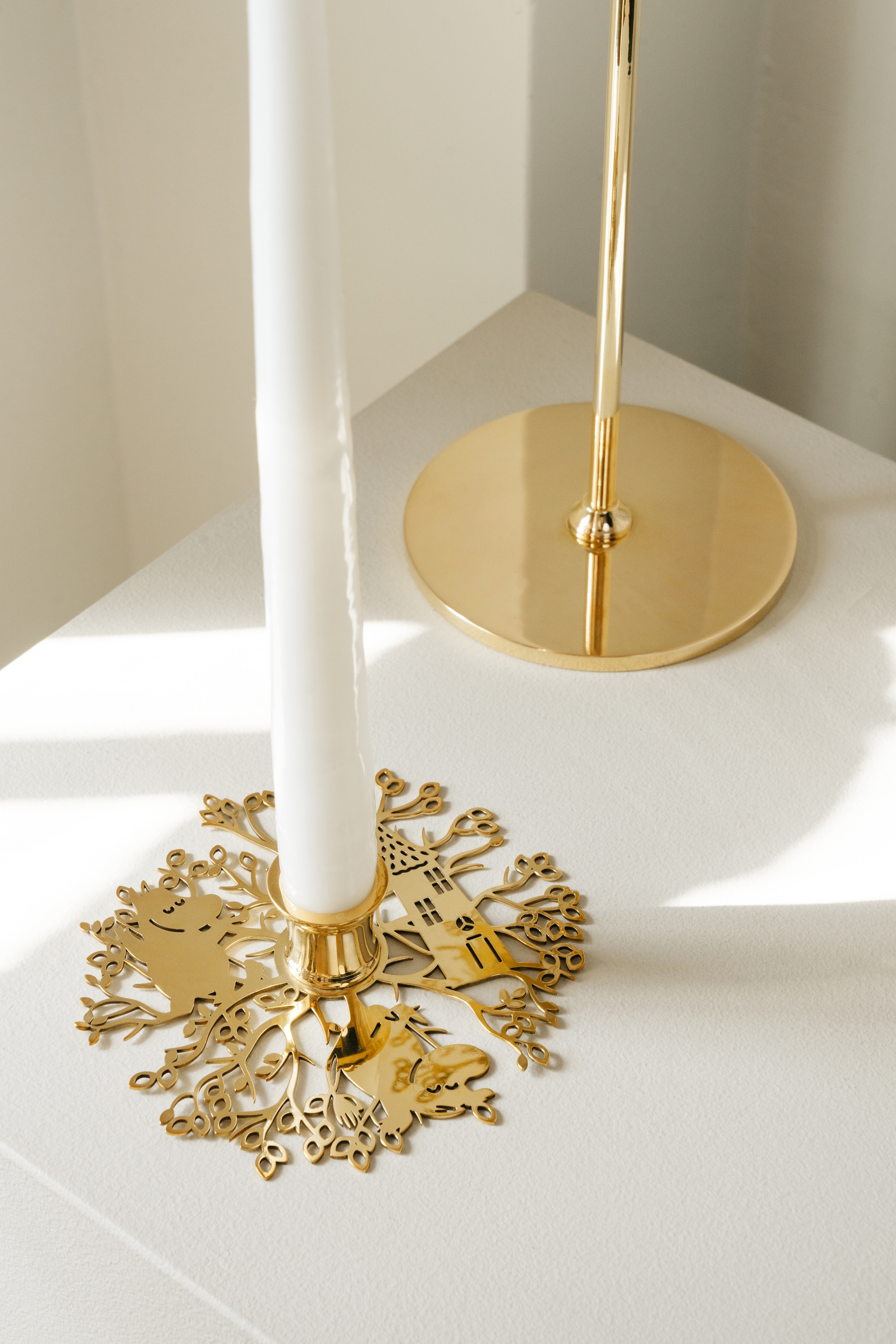 Kokoelmaan kuuluu kaksi kynttilänjalkaa, jotka huokuvat eleganssia erottuvalla muotoilullaan. Sekä matala että korkea kynttilänjalka ovat kauniisti kuvioituja ja saaneet inspiraationsa Muumien ensimmäisestä kirjasta, jossa hahmot piiloutuvat tarinassa puun oksien suojaan myrskyltä. Kynttilänjalkoja on saatavilla kahdessa eri versiossa – massiivimessingistä tai nikkelöidystä messingistä.