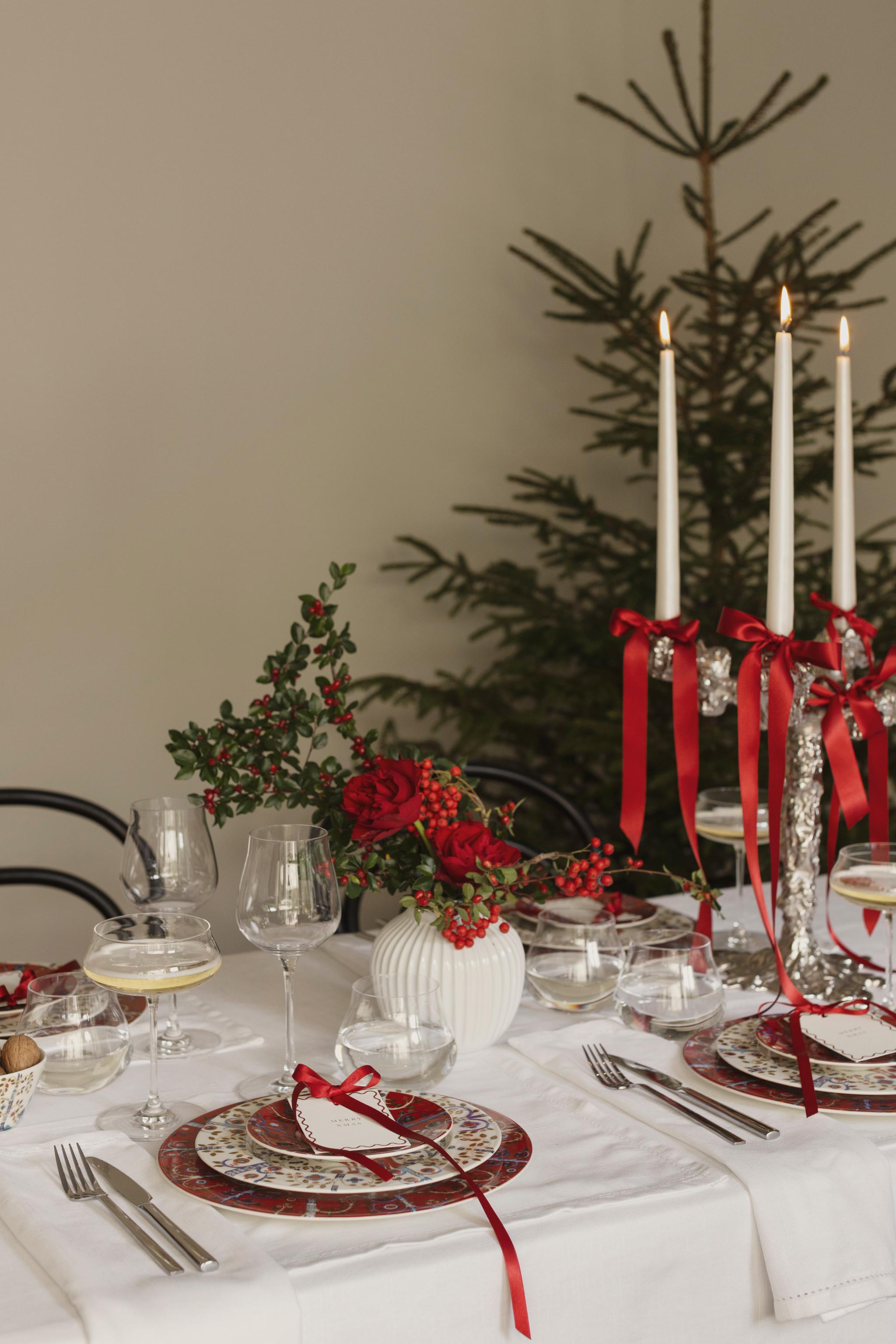 Tänä vuonna panostamme pirteään joulukattaukseen, jossa pohjana toimivat punainen ja vihreä, yhdistettynä metallisiin yksityiskohtiin ja jännittäviin lasipintoihin. Valitse neutraali astiasto pohjaksi ja lisää mukaan eri joulusarjojen elementtejä luodaksesi upean kattauksen.