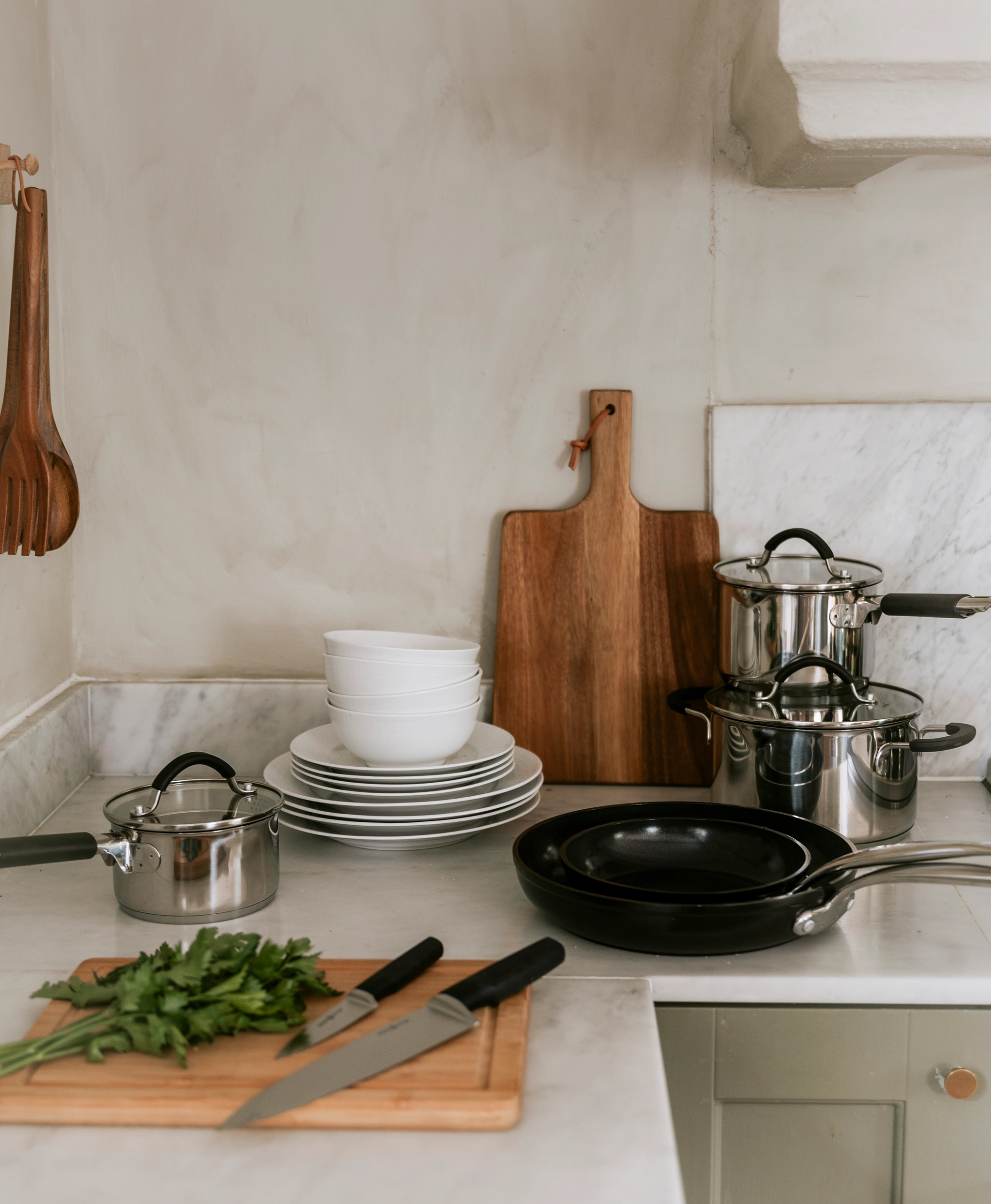 - Aivan kuten rakennat vaatekaappia, varustat myös keittiötäsi - tarvitset vakaan perustan, johon voit luottaa. Keittiöstä kannattaa löytyä kattava kattilasarja, kestävä leikkuulauta, monipuolinen veitsisetti, kestävä paistinpannu ja ajaton astiasarja, joka sopii kaikille aterioille.