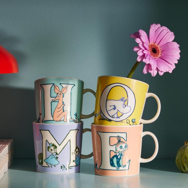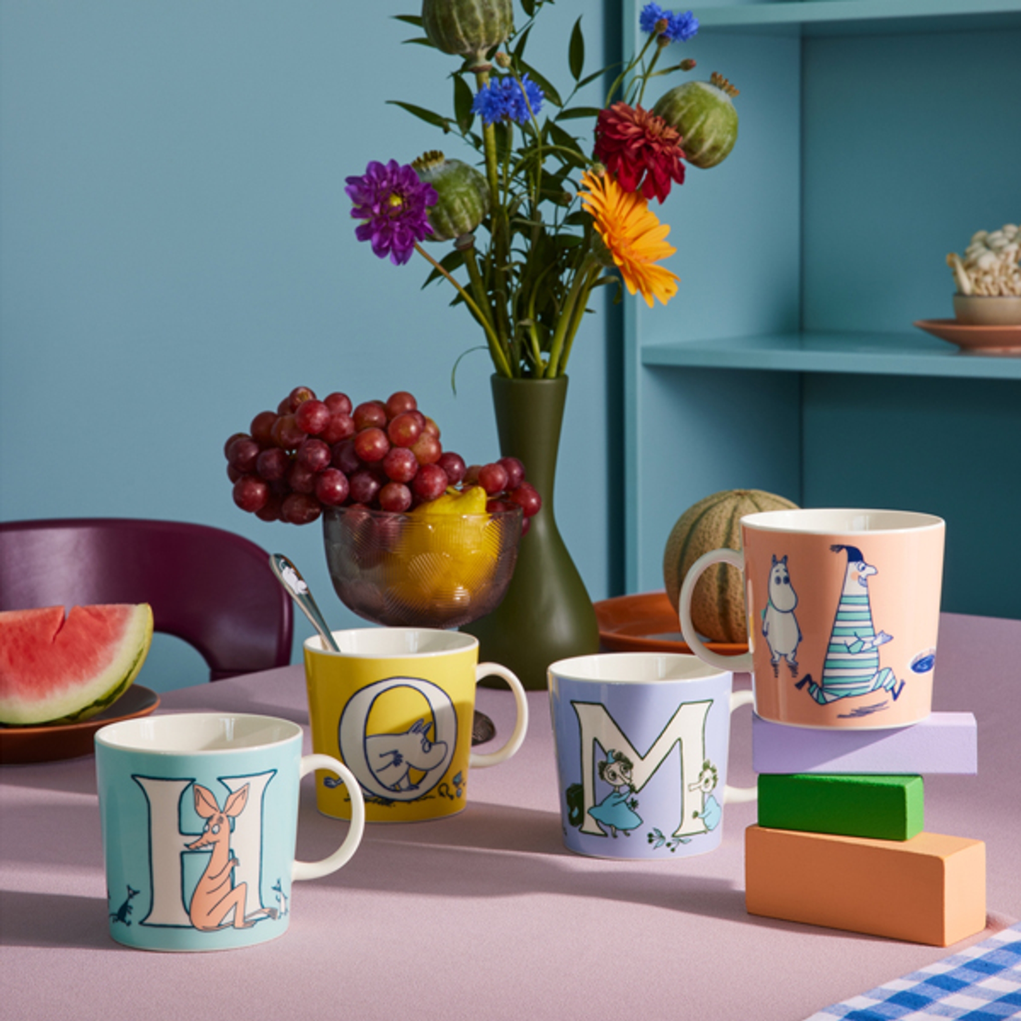 Nyt voit vihdoin tilata ensimmäiset muumimukit Moomin by Arabian uudesta aakkoskokoelmasta. Kokoelman ensimmäiset kirjaimet ovat L, O, V ja E, jotka yhdessä muodostavat sanan LOVE, sekä kirjaimet H ja M. Aakkoskokoelmaa täydennetään vuosittain uusilla kirjainmukeilla, jotta voit kerätä koko aakkosen Muumimukeja.