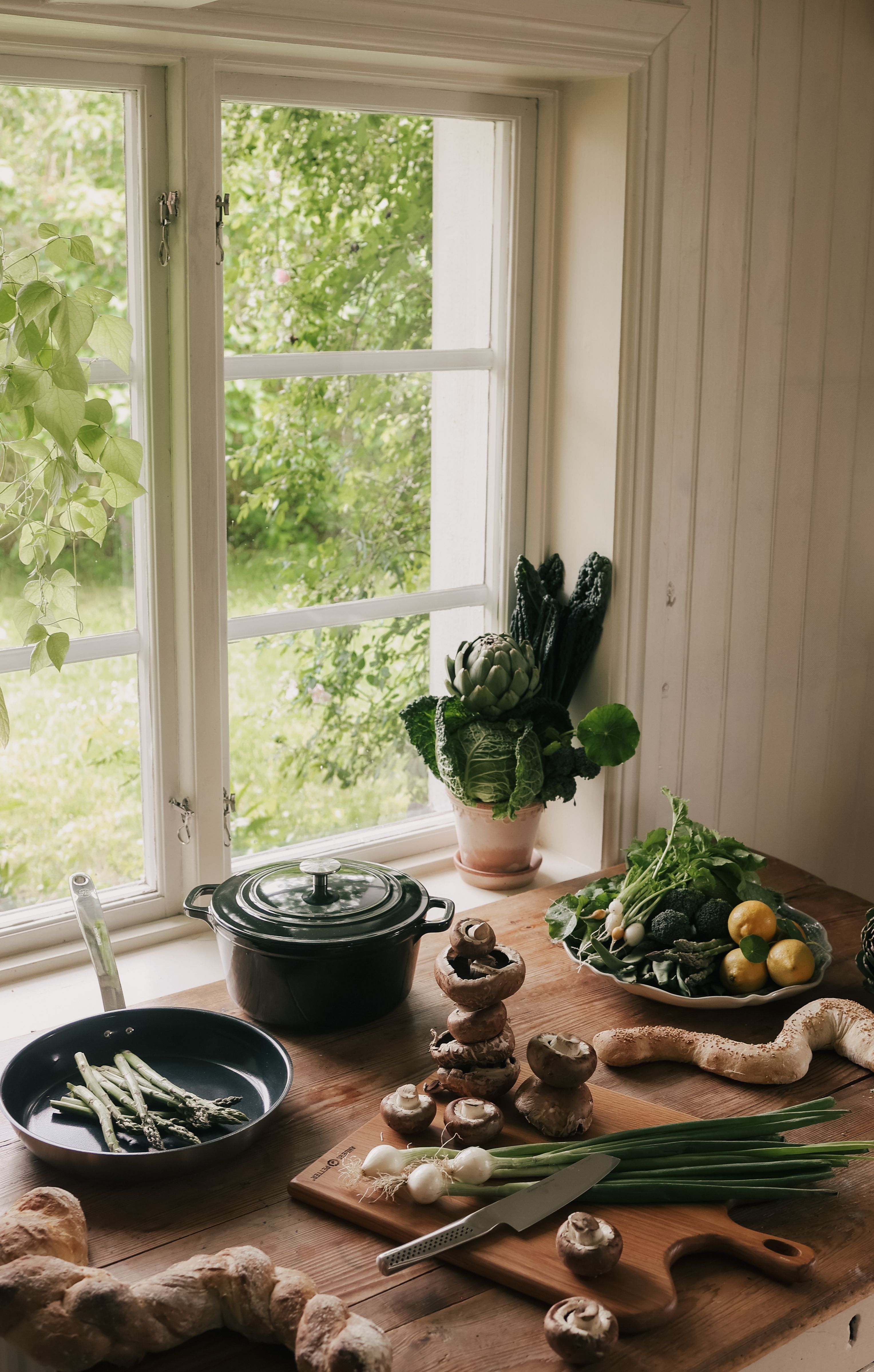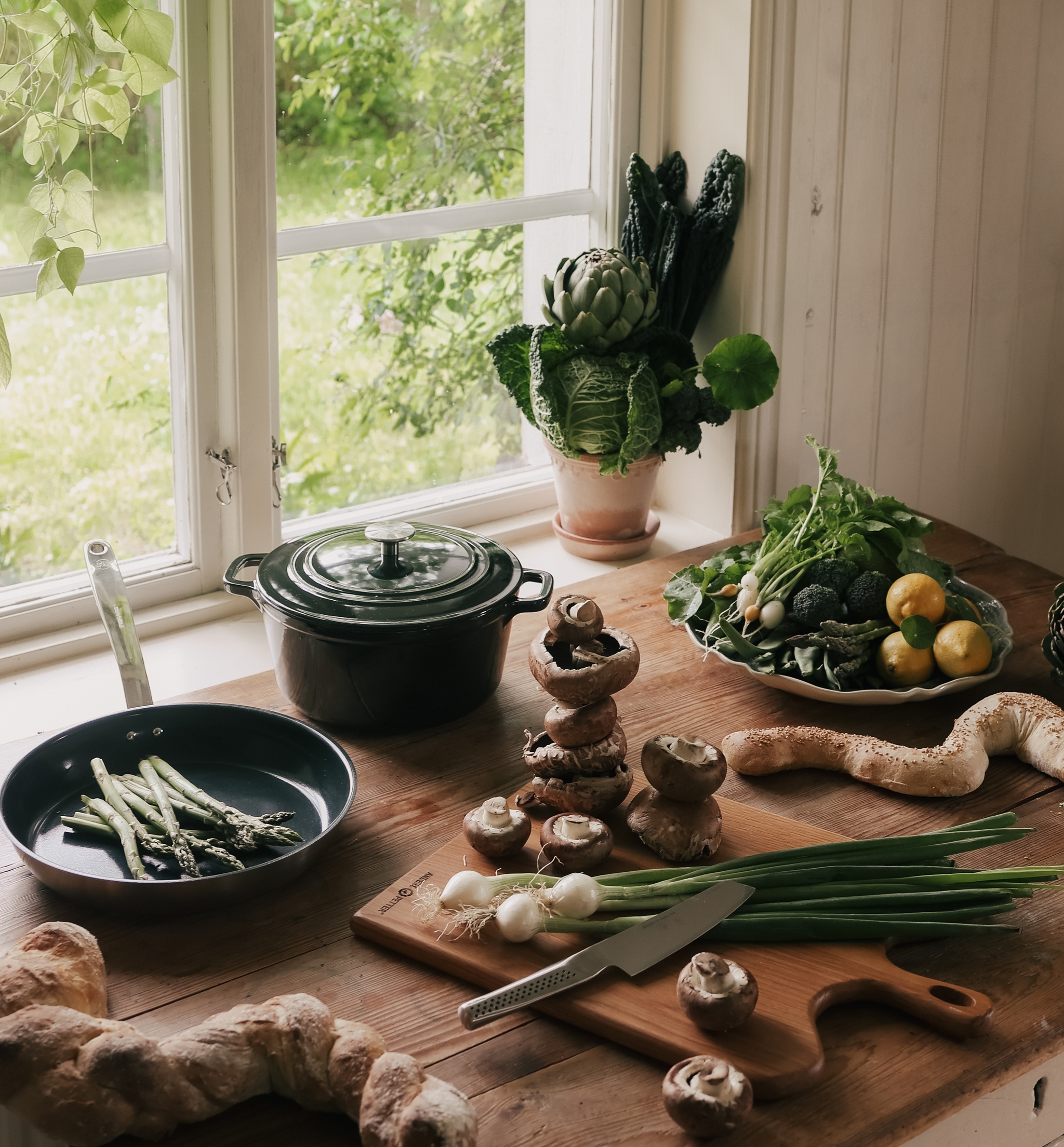 Juurekset, artisokat, kurpitsat, munakoisot, salaatit - kesäsadosta löytyy runsaasti eri herkkuja. Valmista ylellinen juurespyttipannu, herkullinen gratiini tai paistettuja juureksia kauniissa väreissä, jotka tarjoilet murean lihan ja runsaan kastikkeen kera. Mikset kokeile terveellisiä ja maukkaita juureslastuja airfryer :issä? Viipaloi juurekset mandoliinilla erittäin ohuiksi viipaleiksi ja aseta airfryer :iin noin 25 minuuttia, 160-170 asteessa. Kurpitsoista voit valmistaa esimerkiksi kermaisen keiton, jota tarjoat vastaleivotun leivän kanssa. Voit myös kokeilla gratinoida munakoison rapealla pankolla! Viime vuosina kaali on tehnyt vahvan paluun trendikkäässä ruoanlaitossa, ja valmistamme mielellään erilaisia kaalisortteja, joita löydämme sadosta tähän aikaan vuodesta. Vanhojen klassikoiden, kuten kaalivanukkaan lisäksi voit kokeilla valmistaa upeita japanilaisia kaalipannukakkuja, hierottua parsakaalia, lehtikaalipestoa, friteerattua kukkakaalia (sopii valmistaa aifryer :issä!) tai tacoa, jonka tarjoilet tuoreissa kaalinlehdissä. Kyllä, kaali-listasta voi tehdä pitkän!