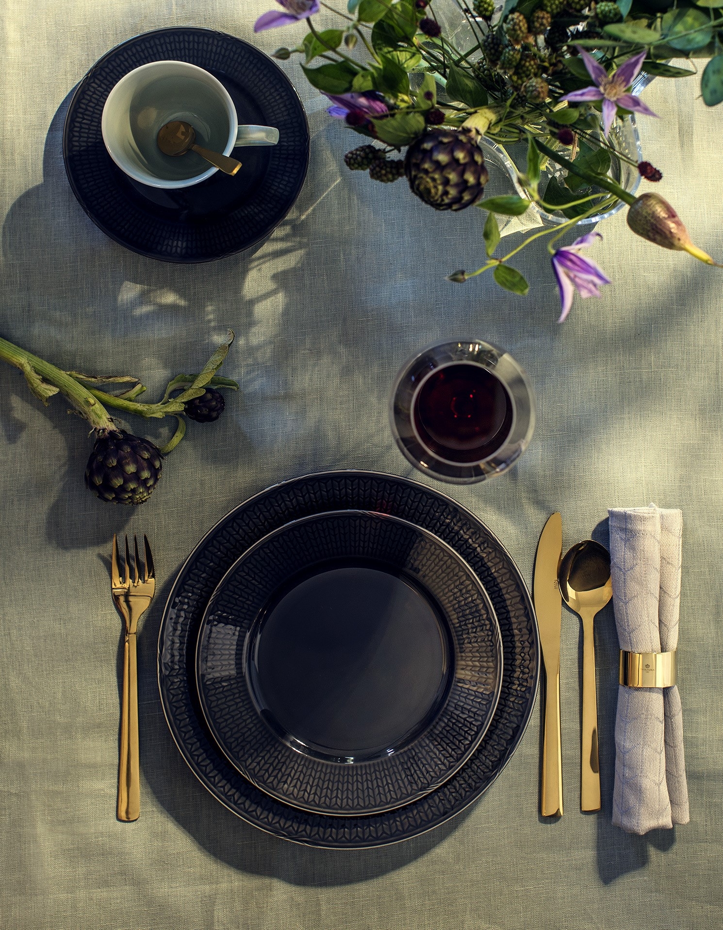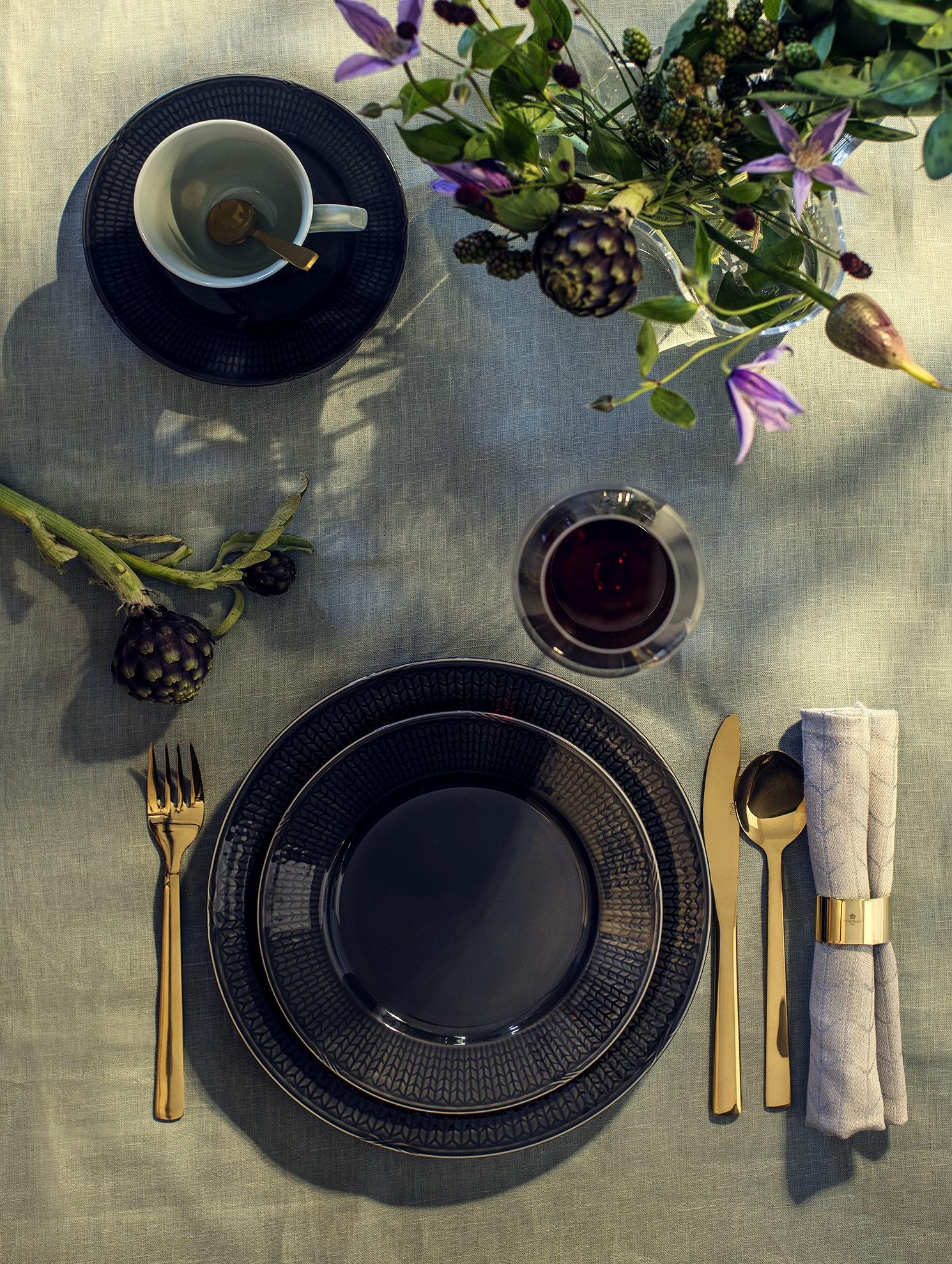 Luo henkilökohtainen ilme katettuun pöytään tuomalla siihen mieleisesi elementtejä - se voi olla sekoitus jo omistamaasi ja uutta täydentävää. Sensyksyllä on hyvä idea jättää pienikukkainen ja kuviollinen posliini hyllylle ja panostaa sen sijaan hillitympiin väreihin. Voit valita joko astioiden olevan murrettu sävyltään tai miksi et valitsisi esimerkiksi liinaksi jotain tummempaa. Jos kuitenkin haluat vielä pitää kiinni kesästä, panosta vaaleaan posliiniin ja lisää esimerkiksi savunharmaat lasit tai muita tummia yksityiskohtia, kuten lautasliinat, aterimet tai jälkiruoka-alustat.