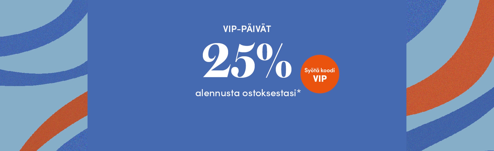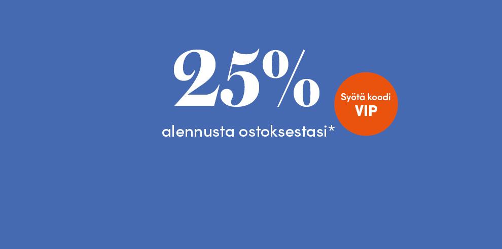 Osta 25% alennuksella – syötä koodi VIP kassalla