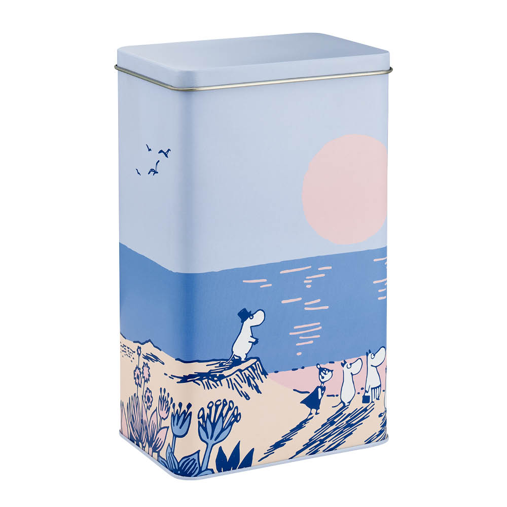 Muurla Muumi Peltipurkki Auringonlasku 12x8x20 cm on käytännöllinen ja koristeellinen säilytysratkaisu. Purkki on valmistettu elintarviketurvallisesta metallista ja sopii kuivatuotteiden säilyttämiseen – kuten kekseille, teelle tai pähkinöille.